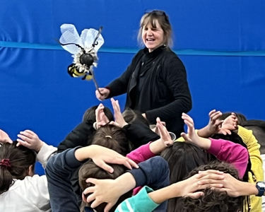 Für Grundschulkinder gibt es eine lebendige/Geschichte mit der Honigbiene Berta. Dabei geht es um das spannende Leben von Honigbienen, um Ökokreisläufe und ein verantwortungsvolles Handeln. Spielerisch werden ökologische Themen nahegebracht, die Wahrnehmung geschult und Zusammenhänge verdeutlicht. Anschließend gibt es eine Honigverkostung.